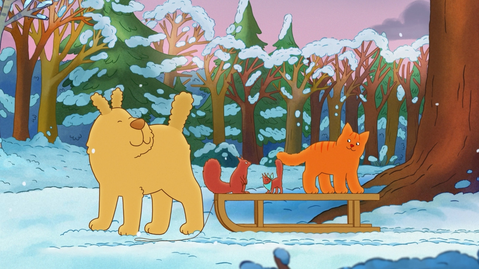 Ein verschneiter Wintertag: Tommy Tom und Cat Mouse entdecken den Schnee und geraten in Aufregung, als der neue Nachbar Woof auftaucht - ein großer, lauter Hund. Auf ihrer Flucht stoßen die beiden auf einen Schlitten und sausen die Dünen hinunter. Unterwegs begegnen sie alten Freunden, schließen neue Bekanntschaften und lernen, dass sich hinter vermeintlicher Bedrohung manchmal einfach nur der Wunsch nach Freundschaft verbirgt. (Quelle: Verleih)